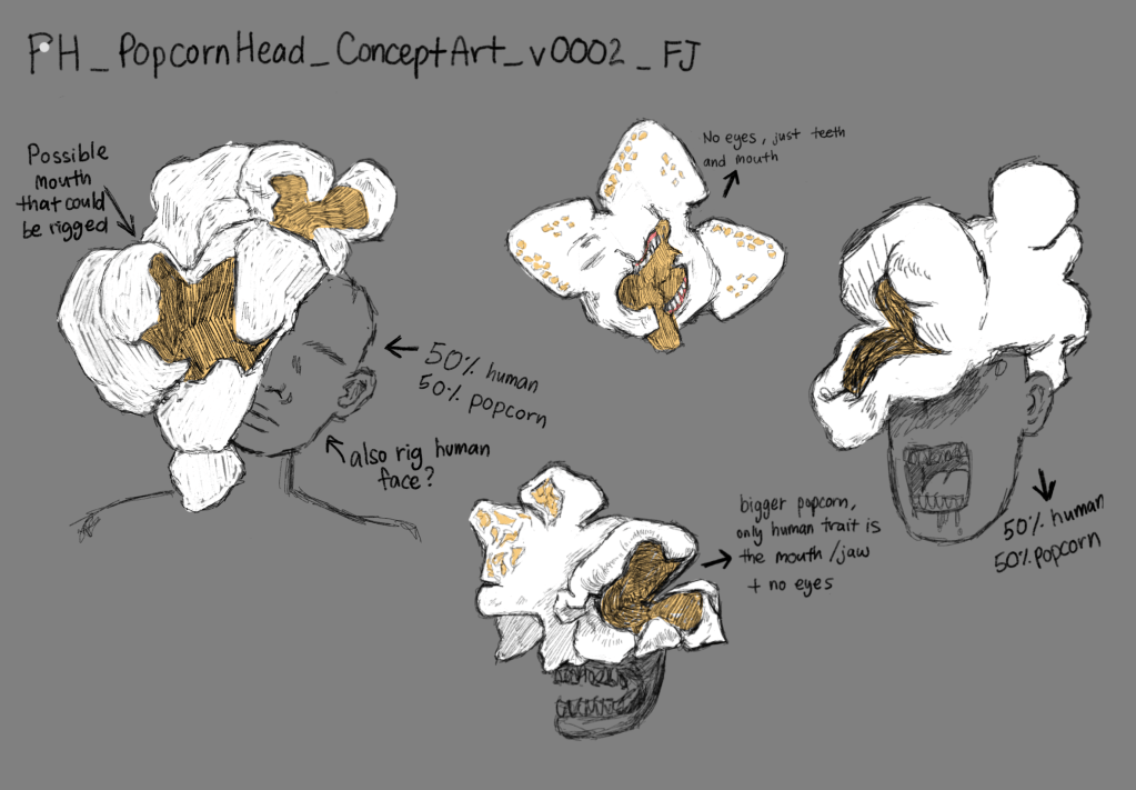 From late April to June, the AIE Film and VFX classes collaborated on a short film, allowing us to apply our specialisations in a real production environment. We worked closely with director Lucas Hinkley to realise his concept of transforming a character’s head into popcorn.